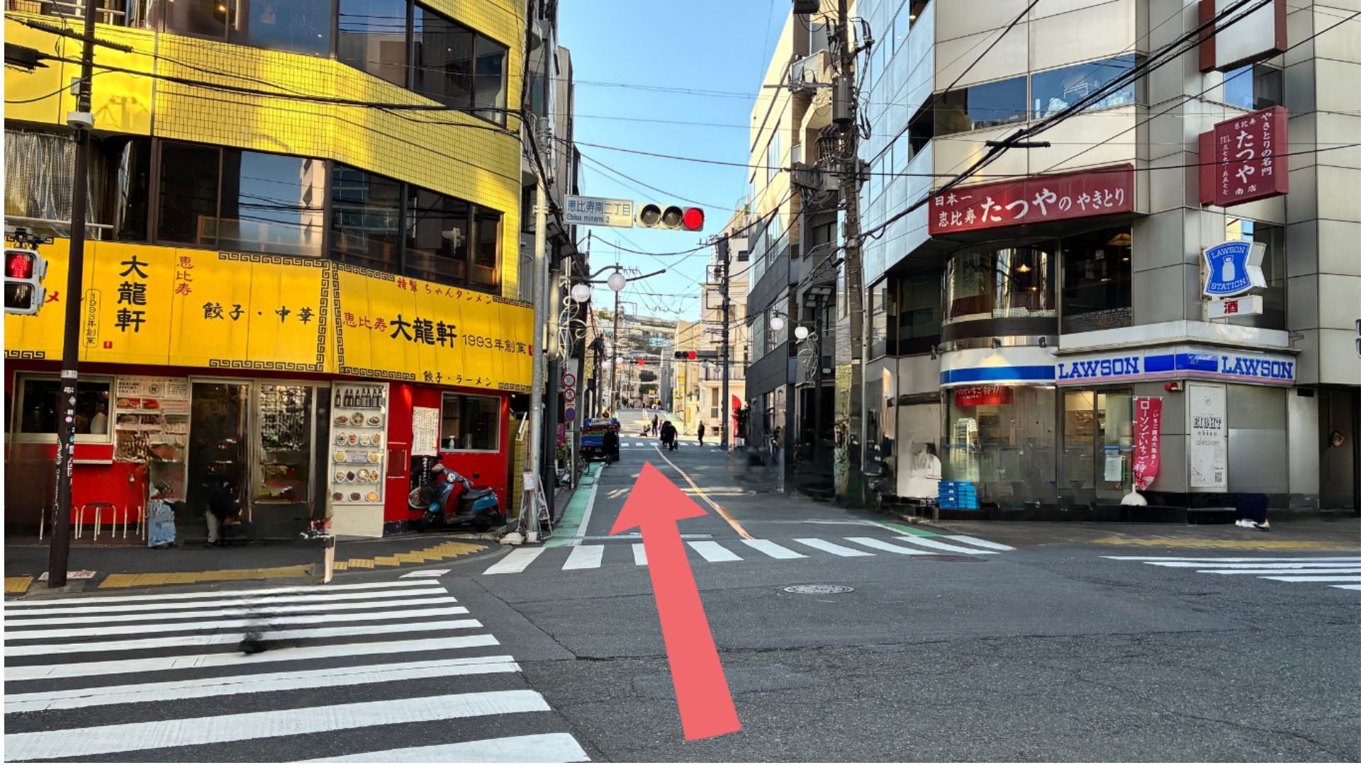 恵比寿南2丁目の信号を渡ります。